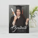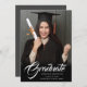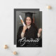 Cartões modernos e elegantes para o anúncio da graduação, com um roteiro elegante de caligrafia e texto moderno com sua foto de formando. A parte traseira da placa oferece espaços de texto personalizados para informações sobre a graduação ou pode ser reformulada para transformar a placa em um convite de festas de formando. Escrevendo branco sobre preto e cinzas reais no verso ou personalize facilmente o plano de fundo para uma cor de sua escolha. Para ver mais itens como este, visite minha loja aqui em "www.Zazzle.com/LakeViewCardCo". Obrigados
