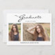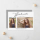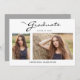 Este moderno e elegante cartão de anúncio da graduação em 2 fotos, apresenta elementos design do texto moderno fundidos com um roteiro elegante de caligrafia. As fotos de formando são exibidas na frente do cartão, enquanto a parte traseira do cartão oferece espaços de texto personalizados para informações sobre a formatura e a viagem futura. Os fundos são brancos na frente e cinzas prateadas na parte traseira ou os personalizam facilmente para as cores de sua escolha. Para ver mais itens como este, visite minha loja aqui em "www.Zazzle.com/LakeViewCardCo". Obrigados