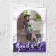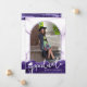 Crie um impressionante anúncio de fotos de formatura com geode de agata roxo e brilho púrpura falso para sua filha com tipografia de script manuscrito chic para o FORMANDO do título acentuado com um boné de formatura ou placa-mãe em branco e uma foto em um arco moderno na frente. O verso apresenta uma fotografia e o seu texto personalizado para incluir detalhes sobre o seu formando. Faz uma design única que reflete seu estilo e/ou coordenadas com suas fotos ou cores escolares para compartilhar com seus amigos e família. ASSISTÊNCIA: para obter ajuda com a modificação ou personalização do design, alteração de cor, redimensionamento ou transferência do design para outro produto, entre em contato com o designer ANTES DE ENCOMENDAR através da guia MENSAGEM de Bate-papo Zazzle abaixo ou envie um email para makeitaboutyoustore@gmail.com.
