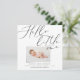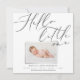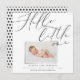 Olá, pequeno anúncio de 1 foto-nascimento moderno. Texto de design de tipografia de guião elegante, efeito fotográfico impresso moderno. Design preto branco monocromático poka bot backer.