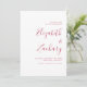 Este simples e ousado casamento moderno salve o cartão de data com texto magenta em caligrafia de escrita manual e sans serif, alinhado com a margem certa num fundo branco. A parte traseira da placa é magenta sólida.