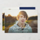 Este anúncio de graduação de sangramento de cheio apresenta uma saudação de script de caligrafia em branco. O design moderno realmente permite que sua foto brilhe mantendo os detalhes mínimos. **O texto e a foto no verso podem ser facilmente removidos se não forem necessários. Ou você pode alterar o texto para ser uma mensagem pessoal** Todas as cores (script, texto e cores de fundo) também podem ser personalizadas usando a ferramenta design.