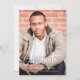 Este anúncio de graduação de sangramento de cheio apresenta uma saudação de script de caligrafia em branco. Este design simples, mas elegante, realmente permite que sua foto brilhe mantendo os detalhes mínimos. Você pode personalizar a cor de trás para coordenar com as cores da sua escola ou sair como está! **O texto e a foto no verso podem ser facilmente removidos se não forem necessários. Ou você pode alterar o texto para ser uma mensagem pessoal** Todas as cores (saudação, texto e cores de fundo) também podem ser personalizadas usando a ferramenta design.