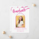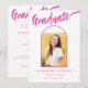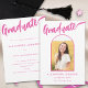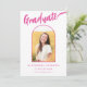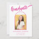 Celebre o segundo grau, a faculdade ou a graduação universitária da sua filha com este cartão de anúncio de arco de fotos preto e rosa-quente, lúcido e lúcido. Queimada com estilo, esta placa apresenta uma caligrafia brilhante de script rosa-quente contra um fundo preto em negrito, tocado com um arco rosa divertido e elegante. A frente exibe a palavra "Formando" em uma estonteante escrita rosa-quente, complementada perfeitamente pelo seu nome e detalhes de graduação em tipografia rosa moderna. O verso oferece espaço para informações adicionais na coordenação de texto rosa quente. Com um modelo de foto fácil de usar, você pode personalizar este cartão com uma foto apreciada do seu formando, fazer-o exclusivamente dela. Desenhada pela artista Catherine Sweetman, esta carta única é a forma perfeita de marcar sua conquista e compartilhar a alegria com amigos e familiares!
