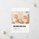 Cartão com fotos minimalista manuscrito para anunciar o nascimento de seus gêmeos. Totalmente personalizável com a fotografia, o nome, as estatísticas de natalidade e outros detalhes dos seus bebês. Cores editáveis e fundo geométrico amovível.