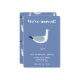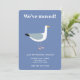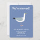 Apresentando uma design de gaivota divertida, perfeita para amantes de pássaros que querem compartilhar suas interessantes notícias com um toque de humor. O inverso apresenta um padrão correspondente para criar uma aparência coesa. Ideal para quem se move perto da costa, este anúncio é uma forma excelente de manter seus amigos e família atualizados em seu novo endereço.