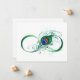 O símbolo do infinito com uma pena brilhante, verde, de pavão artístico sobre um fundo branco. Tatuagem.