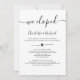 Moderno preto branco simples, nós fugimos da foto de casamento com uma elegante letra de caligrafia.
