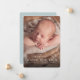 Apresente o seu novo bebê com este doce e simples anúncio vertical de nascimento de fotos. As boas-vindas são uma escritura elegante e moderna e há espaço para um nome grande, estatísticas e nomes de pais também. A parte de trás é uma moderna faixa azul-mole. Perfeito para compartilhar fotos de recém-nascidos com amigos e familiares!