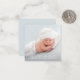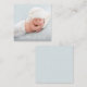 A simples camada branca de tipografia do nome do bebê e estatísticas de natalidade e a fotografia do seu bebê são apresentadas neste pequeno anúncio de 2,5" x 2,5" de fotografia quadrada de nascimento. **MUITO PEQUENO PARA MAIL por si só, mas perfeito para incluir em uma nota de agradecimento, obrigado que você oferece, ou para entregar aos amigos e à família. (Muito pequeno para correio.) Foto do cheio sangrando na parte frontal e azul-claro sólido (ou qualquer cor que você escolher) na parte traseira com espaço para escrever uma mensagem pessoal. **O Serviço de Design ao Vivo pode ajudá-lo com o layout ou as cores do design, se necessário.