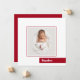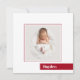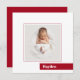 Os anúncios de natalidade quadrados de 5,25" x 5,25" apresentam a sua foto favorita do bebê recém-nascido e o nome do seu bebê em um bloco de cor vermelha na frente, as estatísticas de natalidade e seus nomes no verso. **ENVELOPES QUADRADOS REQUEREM POSTAGEM EXTRA. Use envelopes A7 de 5" x 7" para taxas de postagem regulares.