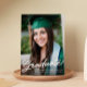 Com um simples "formando" num estilo manuscrito moderno, este anúncio de graduação de duas fotos e o convite são a forma perfeita de celebrar o seu formando. Apresentando uma foto vertical na frente com o tipo branco, este design também tem espaço na cinza da ardósia neutra para incluir uma segunda foto e detalhes da festa de formatura. É um design de graduação na moda perfeito para meninas e caras e funciona bem para a graduação de segundos graus e formandos universitários. Este convite da parte de formando por Lea Delaveris Design também está disponível como download digital. Encontre mais estilos na coleção.