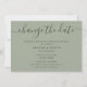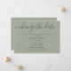 Anuncie o adiamento do seu casamento com este cartão verde de sábio minimalista com uma letra moderna.