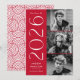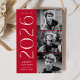 Convite de formatura sofisticado com três fotos do formando localizadas à direita do design em um layout vertical. "2025" é exibido em letras brancas em estilo art déco moderno com fundo vermelho. Personalize o convite de formatura com foto moderna adicionando o nome do formando e o nome da escola. O design se inverte para exibir um fundo xadrez vermelho e branco. Perfeito para formaturas tanto do ensino médio quanto da faculdade!
