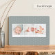 O simples anúncio de nascimento moderno apresenta uma foto horizontal ou paisagística de sangramento de cheio com uma faixa pontiaguda no canto superior esquerdo, com o nome do bebê, data de nascimento e estatísticas de natalidade. Adicione uma mensagem pessoal ao verso, juntamente com três fotos quadradas adicionais.