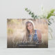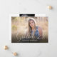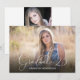 Este anúncio de formatura oferece uma moldura de foto que preenche toda a frente acentuada com o texto elegante: Graduado '26. O verso oferece outra moldura de foto menor e texto personalizado para os detalhes do seu anúncio de formatura.