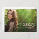 Um anúncio elegante de graduação de 2023 que apresenta duas fotos da faculdade ou do formando segundo grau. Escrito branco elegante e moderno e ano sobre uma camada junto com duas fotos do formando. Você pode ajustar o texto na parte traseira do cartão para fazer com que isso seja um simples anúncio de graduação ou um convite de festas de formando. Um na moda e design de graduação simples para a classe de 2023!