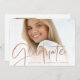 Este anúncio elegante de graduação de 2022 apresenta duas fotos da faculdade ou do formando segundo grau. Um roteiro casual, moderno, faux rosa gold aparece em uma camada junto com duas fotos do formando. Você pode ajustar o texto na parte traseira do cartão para fazer com que isso seja um simples anúncio de graduação ou um convite de festas de formando. Um na moda e design de graduação simples para a classe de 2022!