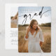 Um anúncio de graduação elegante com uma sobreposição de fontes de script manuscrito. Perfeito para formandos de segundo grau, faculdade ou universidade. Basta trocar suas próprias fotos e mudar o nome, detalhes e ano. A parte traseira do cartão fornece espaço para uma mensagem pessoal mais longa. Outros designs semelhantes estão disponíveis na minha loja.