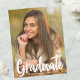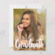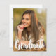 O formando é escrito em branco manuscrito sobre sua foto de retrato do mais velho e faz um cartão de anúncio de graduação moderno, chic. Personalize com seu nome e segundo grau ou classe universitária de 2025 sob a tipografia em negrito e adicione seus detalhes pessoais na parte traseira desses formandos de camada de texto elegante.
