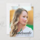 O formando é escrito em um simples roteiro preto sobre sua foto de retrato do mais velho para um cartão de anúncio de graduação moderno. Personalize com seu nome e segundo grau ou classe universitária de 2025 sob a tipografia cursiva e adicione seus detalhes pessoais na parte de trás desses anúncios de graduação moderados e contemporâneos.