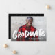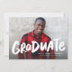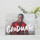 Este anúncio de graduação de uma foto apresenta uma foto de quadro de cheio com a palavra "formando" em negrito tipo brutal em branco. Esta placa de na moda também oferece espaço para o nome do formando, escola e ano e quaisquer outros detalhes que você queira compartilhar. A parte de trás é uma coordenada preta pontilhada com confete branco. É uma forma excelente de celebrar uma formatura e anunciar a notícia para amigos e familiares. Este cartão legal coordena-se também com os suprimentos e decorações da coleção de Formandos de Design de Lea Delaveris.