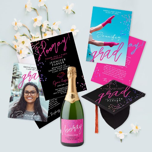 Celebre sua graduação em estilo com este anúncio de foto do Na moda moderno, entupindo com alegria dinâmica e colorida! A frente apresenta um design elegante e minimalista com cor-de-rosa | tipografia magenta e branca, associada a uma fotografia grande e vibrante. As costas mostram os detalhes da festa em um fundo rosa vivo, trazendo uma vibração jovem e enérgica. Personalizável para um toque personalizado, você pode atualizar facilmente a foto e o texto. Este convite irradia as vibrações modernas da juventude, perfeitas para convidar convidados a comemorar a sua inesquecível formatura. Além disso, está disponível como um download digital, fazer fácil de compartilhar online ou impressão em casa!