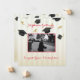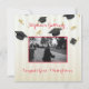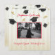 Placa de lançamento de fotos planas para gradação com conselhos de argamassa com gotas gráficas e um esplash de configuração de brilho dourado em fundo listrado com creme. Imagem fotográfica e todos os detalhes decorativos da tipografia vermelha podem ser facilmente personalizados para incluir seu próprio nome de formando e o ano apropriado, juntamente com sua própria mensagem personalizada no lado oposto. Uma placa de chic & na moda para espalhar a feliz notícia do sucesso acadêmico de seu novo formando.