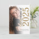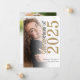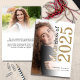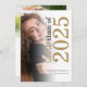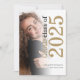 Moderno 2 fotos Douradas Texto Preto 2023 Graduação. Uma tipografia na moda rotacionou lateralmente e sua foto para anunciar a notícia do seu formando, com texto em preto e ouro à direita. Personalize facilmente o ano, o nome do formando e o segundo grau e a mensagem no verso, e uma segunda foto.