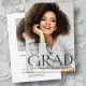 Cartões de anúncio de formatura modernos e ousados de 2 fotos, apresentando elementos de design escuros transparentes, texto em estilo de moda moderna "Grad" juntamente com uma tipografia minimalista. A foto do formando na frente do cartão destaca toda a superfície com uma segunda foto no verso. O verso do cartão também oferece espaços de texto personalizados para informações sobre sua formatura e jornada futura. Perfeito para estudantes do ensino médio, faculdade e universidade.