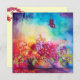 Pintura de aquarela branca, colorida e vibrante em vermelho vivo, rosa,fuchsia,amarelo,azul,verde,cor púrpura .2009. Ilustração para um conto de Andersen. Uma criança pequena que estava nascer numa flor, que dormia numa casca de nogueira, que remava numa folha de tulipa...