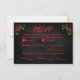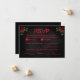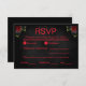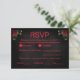 Este RSVP de casamento único no estilo gótico é impressionante e ousado, com um fundo enfumaçado preto que exumenta um ar de mistério e elegância sofisticada. O texto, que é totalmente personalizável de todas as formas, é mostrado em vermelho correspondente. Este RSVP coordena com as outras peças da nossa Coleção Til Death Do Us Part Gothic.