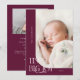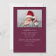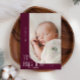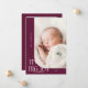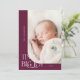 Cartão de nascimento elegante e moderno, tema do Natal, com um texto tipográfico que diz "pequenos dedos grandes alegria". Este é um cartão de anúncio de nascimento para as férias! Adicione suas fotos, estatísticas de natalidade e uma mensagem! O fundo é morango.