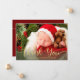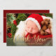 Envie este cartão de nascimento de bebê de férias moderno e obrigado-o por presentes todos num cartão. A design apresenta uma foto do seu bebê com uma sobreposição de texto que diz "Obrigado" em uma tipografia moderna: Abaixo está o nome do seu bebê. A parte de trás do cartão tem um fundo vermelho de amora com seus detalhes de nascimento personalizados. Desenhado pela artista ©Susan Coffey.