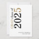 Tipografia Moderna Graduação Dourada 2025. Um na moda tipográfico para anunciar a notícia do seu formando, com uma tipografia ousada e grande girada e à esquerda no topo, em preto e ouro. Personalize facilmente o resto do texto, incluindo a sua mensagem no verso