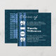 Este design em azul e branco é uma escolha elegante para as necessidades de anúncio de formação do ensino médio ou faculdade. Todo o texto é personalizável. O verso pode ser modificado se você quiser adicionar detalhes da festa. Você também pode alterar a cor do texto para um visual diferente. Experimente diferentes papéis para obter exatamente o visual desejado. Recomendo o papel metálico com tonalidade gelo, que dará ao seu convite um brilho e um lustro especiais.