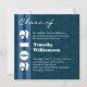 Este design em azul e branco é uma escolha elegante para as necessidades de anúncio de formação do ensino médio ou faculdade. Todo o texto é personalizável. O verso pode ser modificado se você quiser adicionar detalhes da festa. Você também pode alterar a cor do texto para um visual diferente. Experimente diferentes papéis para obter exatamente o visual desejado. Recomendo o papel metálico de tonalidade gelo, que dará ao seu convite um brilho e um esplendor especiais.