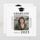 Foto, nome, escola e classe de ano personalizado minimalista simples, preto e branco, com script de tipografia de formando único, imprimível, com formando.