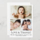 Gratidão expressa em estilo com o Simple Love and Obrigado Typoographic Photo Grid Baby Boy obrigado você, cartão de anúncio de nascimento! Apresentando um design limpo com um layout de grade de fotos, esta placa personalizável é perfeita para mostrar os momentos adoráveis de seu pequeno enquanto agradece aos amigos e à família. Uma maneira sincera e moderna de compartilhar sua apreciação. Três fotos na frente, em estilo limpo e fresco, com o nome do bebê e as estatísticas de natalidade. Ícone de detalhes cardíacos. ©lddesignloft Contacte info@lddesignloft.com se necessitar de assistência neste modelo. Uma maneira maravilhosa de obrigado dos convidados chás de fraldas, uma vez que o bebê é nascer.