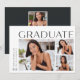 Um cartão de anúncio de graduação elegante e moderno com três fotos (um quadrado e dois horizontais), com "formando" no topo. Personalize com seu ano de graduação, nome e escola ao longo do lado esquerdo. Adicione uma mensagem pessoal ao verso, juntamente com uma foto adicional.