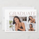 Um cartão de anúncio de graduação elegante e moderno com três fotos (um quadrado e dois horizontais), com "formando" no topo. Personalize com seu ano de graduação, nome e escola ao longo do lado esquerdo. Adicione uma mensagem pessoal ao verso, juntamente com uma foto adicional.