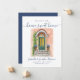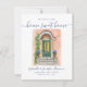 Deixe que sua família e amigos saibam que você tem uma nova casa com esses cartões de anúncio modernos de na moda. A design apresenta uma porta frontal verde-aquarela, acentuada por terracota e azul. Personalize com seu nome e novo endereço. O reverso é coordenado em azul