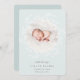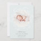 O anúncio de nascimento elegante em cores moles apresenta uma fotografia redonda de recém-nascidos rodeada por uma coroa de galhos e folhas botânicas brancas, com "introdução de [Nome]" no fundo em letra de cinza. Personalize com a data de nascimento do bebê, e as estatísticas de natalidade abaixo, e adicione uma mensagem pessoal às costas, juntamente com uma foto adicional.