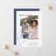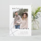 Compartilhe a notícia do seu compromisso com esses elegantes cartões de anúncio modernos que apresentam uma foto vertical ou orientada para retrato com seus nomes sobrepostos em cada canto, e um e comercial desenhado à mão superdimensionado. Personalize com três linhas de texto personalizado ao longo da parte inferior para detalhes adicionais ou o site do seu casamento.