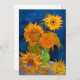 Cartão com o Vaso de Vincent van Gogh com Cinco Girassóis (1888). A vida ainda mostra cinco lindos girassóis em um vaso verde. Um presente de excelente para fãs do Poste-impressionismo e da arte holandesa.