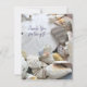 Obrigado, carta chata com texto personalizado na frente. Este cartão bonito com uma imagem de conchas tropicais de praia na frente é vazio ao contrário para escrevendo uma nota pessoal. O texto de exemplo é para uma nota de "obrigado você", mas é facilmente alterado para qualquer ocasião ou para apenas dizer "oi". A parte de trás do cartão tem água do mar e areia da praia. Escolha qualquer tamanho onde o texto e as imagens forem ajustados.