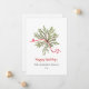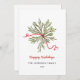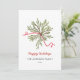 Cartão Holiday simples e Elegante, minimalista e moderno, com fita vermelha atada em verde. Uma vazio lateral para escrever uma pequena nota no remetente ou adicionar uma foto. Etiquetas de endereço de retorno e selo de adesivo disponíveis.