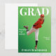 Anuncie a conquista do seu graduado de uma maneira direta e elegante, com um cartão de anúncio em estilo de revista. Use o BG Remover da Zazzle, seu próprio software de edição de fotos ou smartphone para remover o fundo da foto. Adicione o ano de formatura do graduado, escola e nome. Se desejar, escolha a opção "Adicionar Texto" para adicionar uma citação, planos, etc. O fundo verde varia de claro a escuro, proporcionando mais ênfase para a foto do estudante.