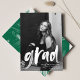 Cartões de agradecimentos de graduação moderno com a foto do formando com "formando" em uma cobertura de script de pincel branco. Personalize a frente do cartões de agradecimentos de graduação adicionando o nome do formando, a escola, o nome e o ano de graduação. A parte traseira da placa apresenta espaço para a sua mensagem escrita ou manuscrita com um fundo de pincéis verdes pintados.