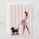 Vintage dona vestida de rosa andando um poodle preto giro